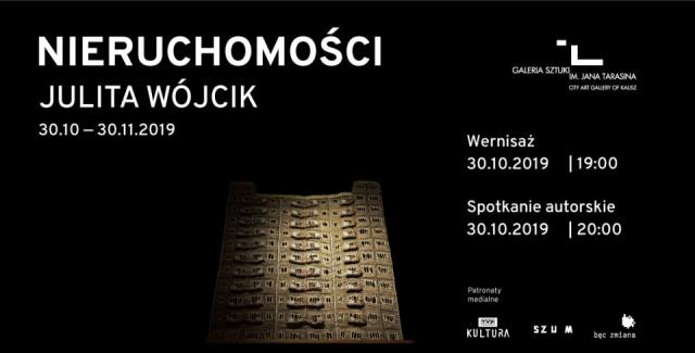 Wernisaż wystawy Julity Wójcik „Nieruchomości” odbędzie się w środę, 30 października o 19:00, w Galerii Sztuki im. Jana Tarasina w Kaliszu. Godzinę później w tejże Galerii będzie miało miejsce spotkanie autorskie.