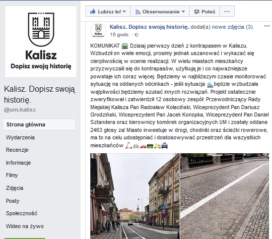 A chodzi między innymi o wpisy na facebooku, w których miejskie biuro informacji odpowiedzialnością za organizację ruchu w związku z kontrapasem, obciąża włodarzy miasta z poprzedniej kadencji.