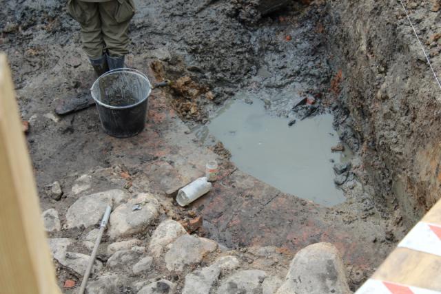 "Cembrowina jest ceglana, licowana kamieniami, które są na zaprawie glinianej. Ukazała się na głębokości około 2-ch metrów pod powierzchnią. Jest uchwycona w 1/4 wielkości. Teraz jest nakaz konserwatorski, żeby odkopać całą studnię. Jeśli wszystko pójdzie dobrze, to będziemy tak rozszerzać wykop, żeby całą studnię odtworzyć, ponieważ pojawiła się propozycja, żeby była ona jednym z elementów rewitalizacji."