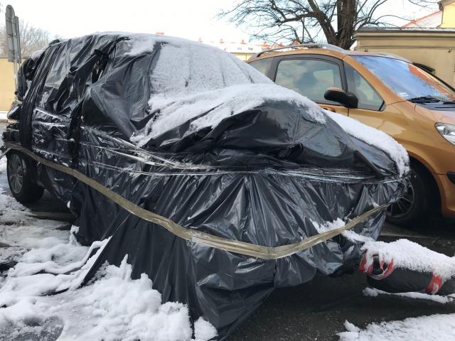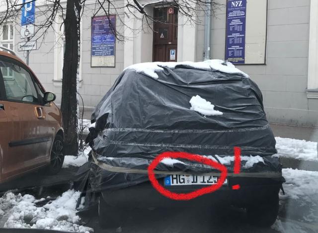 na fot.: auto-pakunek przy ul. Śródmiejskiej w Kaliszu / wrak sobie stoi na niemieckich numerach rejestracyjnych i nie ma na niego mądrych w mieście, mimo, że przecież "namierzony" już bardziej być chyba nie może - jakby co, informuje lokalne radioCENTRUM_106.4