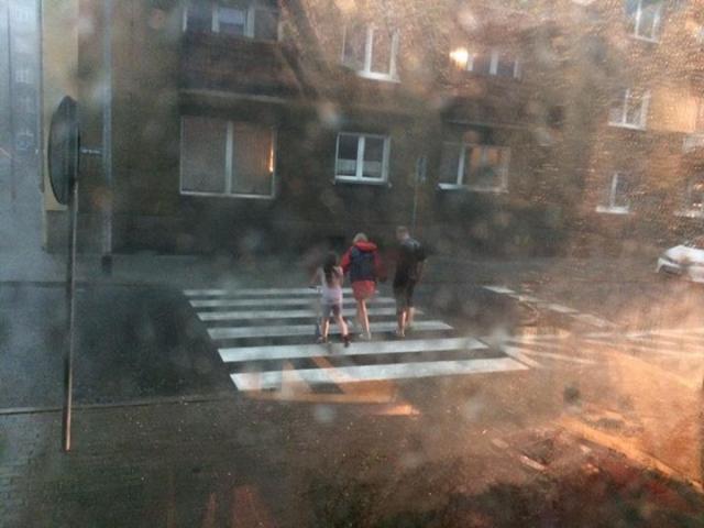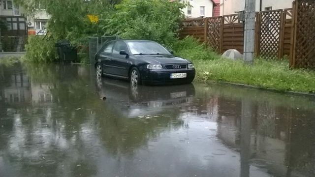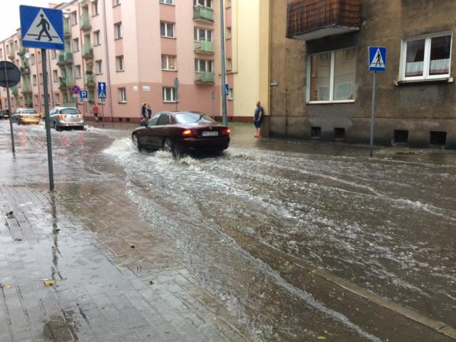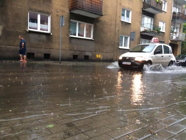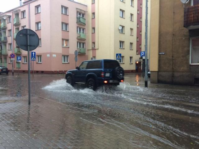 Deszcz zamienił trawniki i parkingi w jeziora i podtopił piwnice w centrum miasta.