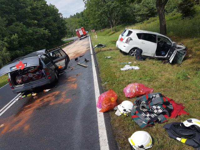 Ze wstępnych ustaleń wynika, że jeden z pojazdów na łuku drogi wpadł w poślizg i zjechał na przeciwległy pas. Doszło do zderzenia pojazdów.