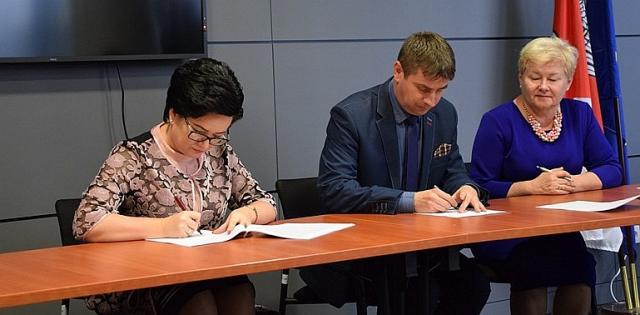 na fot. od lewej: Izabela Mroczek / dyrektor Departamentu Programów Rozwoju Obszarów Wiejskich, Sebastian Wardęcki / burmistrz Gminy Opatówek, Dagmara Gajewska - Pająk / skarbnik gminy