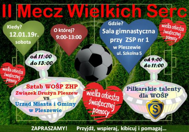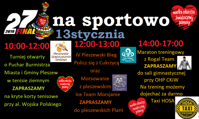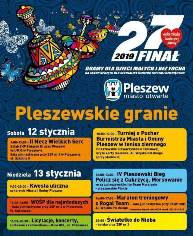 Siedziba sztabu, jak zwykle w Dwójce, skąd 120 wolontariuszy wyruszy o 8.00 na ulice miasta. To tu trwa liczenie pieniędzy, to pleszewianie przynoszą pieniądze zebrane już wcześniej w szkołach, firmach, rodzinach. Przychodzą dzieci ze skarbonkami pełnymi drobnych zbieranych przez cały rok, to tu od 14.00 będzie czynna sala zabaw. Ale pierwsze tony pleszewskiej Orkiestry zabrzmią w sobotę o 9.00 w sali przy Jedynce, gdzie mecz piłki halowej rozegrają harcerze i urzędnicy. W niedzielę o 10.00 na kortach turniej Tenisa Ziemnego o Puchar Burmistrza, o 12.00 w Plantach bieg "Policz się z cukrzycą" oraz morsowanie. Od 16.00 w kinie "Hel"licytacja koszulek i gadżetów WOŚP, fantów przekazanych przez pleszewian oraz voucherów m.in. na dzień z ratownikiem w Parku Wodnym Planty, bilety na koncert w Karczmie Stara Stajnia, gadżety przysłane przez Pleszewian z Islandii. W Orkiestrze gra kucyk Stefanek z Natalią, który będzie wozić dzieci na grzbiecie. Także pies Spiky po raz kolejny będzie kwestować. W 2018 Pleszew zebrał 72 264,09 zł. Czy w tym roku pobijemy w Pleszewie ubiegłoroczny rekord?
