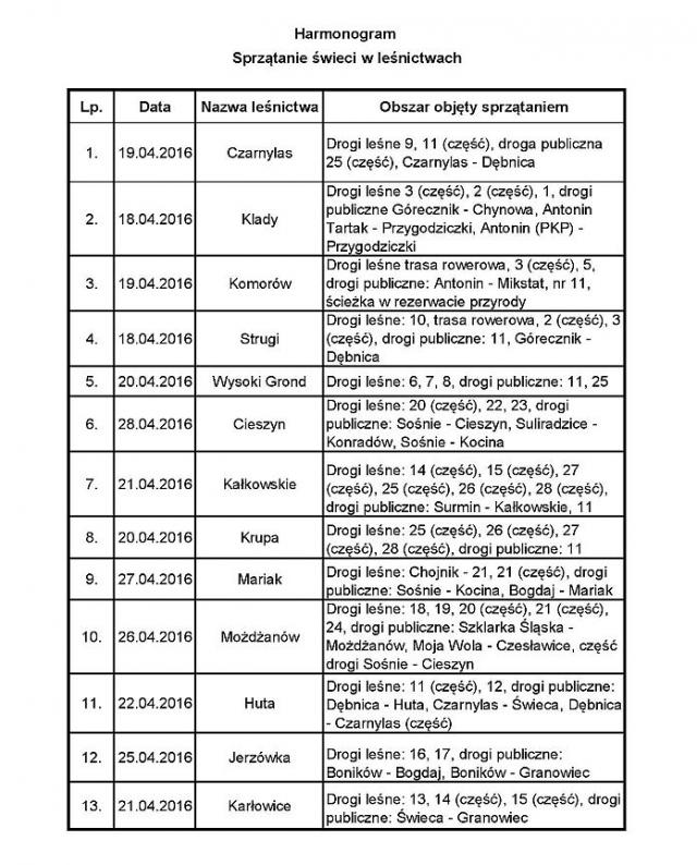"Zgłosić może się właściwie każdy, czekamy na zorganizowane grupy. Wysłaliśmy informacje o naszej akcji do szkół i stowarzyszeń, wiem, że jest odpowiedź. Zgłosiły się już grupy ze szkół, lokalnych stowarzyszeń, a nawet policjanci. Grupa, która się zgłosi będzie kierowana przez nadleśniczego bądź leśniczego w określony teren, tam zostanie wskazany obszar, który sprzątamy w danym dniu".