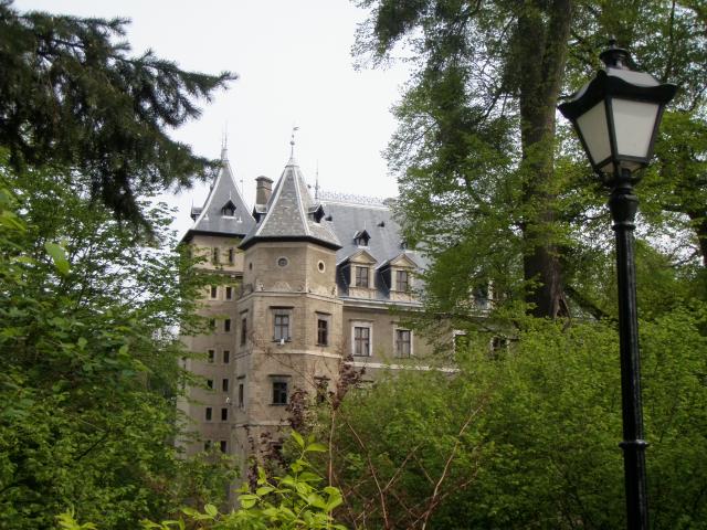 Klatka schodowa - tzw. wielkie schody zamku. Zaprojektowana przez Maurycego Ouradou a w detalach przez Charlesa Biberona. Wykonana przez polskich rzeźbiarzy: Józefa Pepińskiego i jego synów, jest świetnym przykładem historyzmu w rzemiośle artystycznym schyłku XIX wieku.