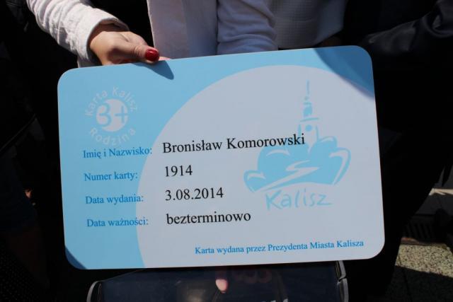 W trakcie spotkania z rodzinami wielodzietnymi prezydent Bronisław Komorowski otrzymał specjalną kaliską kartę dużej rodziny.
