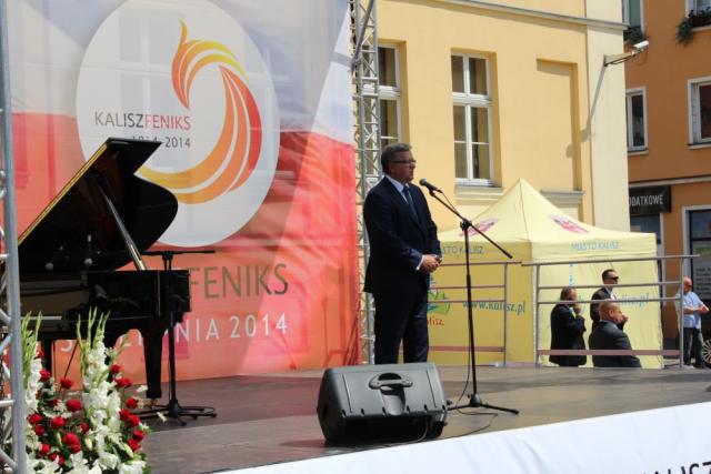 Prezydent Bronisław Komorowski objął honorowy patronat nad tym wyjątkowym jubileuszem. Podczas uroczystości prezydent Polski porównywał zburzenie Kalisza w 1914 roku do zrujnowania stolicy podczas Powstania Warszawskiego w 1944 roku.