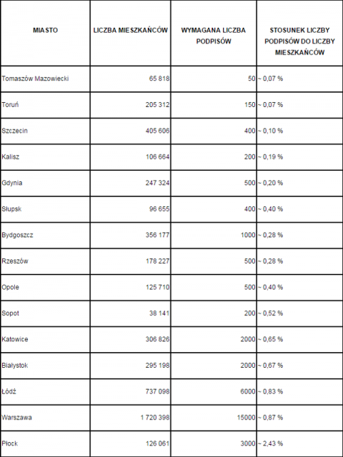 Obecny prezydent Kalisza, Grzegorz Sapiński lekceważy te obawy, twierdząc, że "200 podpisów w Kaliszu zbiera się w ciągu godziny."