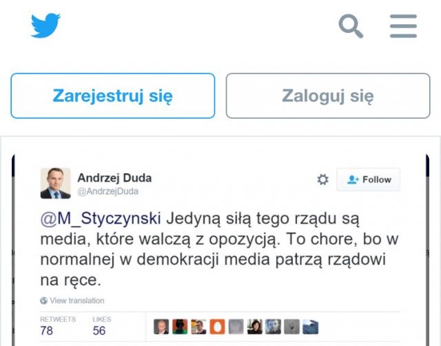 Panu Plichcie dedykujemy wpis na Twitterze z profilu Andrzeja Dudy. Z nie tak dawnej przeszłości...