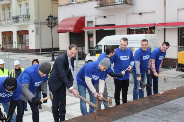 W poniedziałek rozpoczęły się na płycie rynku prace rozbiórkowe. Firma budowlana zlikwiduje także zrujnowany klomb. O tym fakcie, podczas specjalnej konferencji prasowej poinformowało Stowarzyszenie "Wspólny Kalisz" z wiceprezydentem Piotrem Kościelnym na czele.