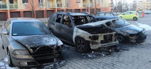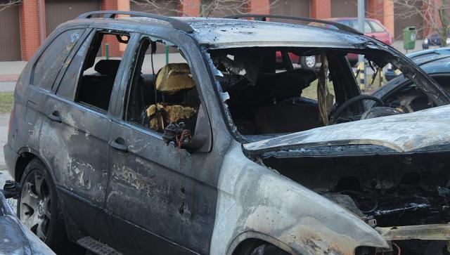 Trzy samochody, w tym luksusowe BMW X5 spłonęły w nocy ze środy na czwartek na parkingu przy ul. Hanki Sawickiej 32 w Kaliszu. Ogień pojawił się po północy właśnie w BMW, a następnie przeniósł się na stojące obok dwa inne pojazdy. O szczegółach zdarzenia powiedział Radiu Centrum mł. kapitan Grzegorz Kuświk, rzecznik kaliskiej straży pożarnej:
