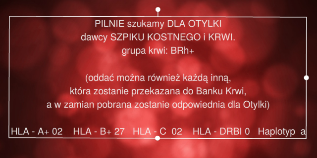 Dziewczynka jest zgłoszona na listę oczekujących w Centralnym Rejestrze Niespokrewnionych Potencjalnych Dawców Szpiku i Krwi Pępowinowej. Jednak im szybciej znajdzie się dawca, tym większa szansa na jej uratowanie.