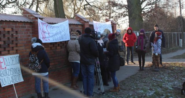 Wolontariusze protestowali przed schroniskiem. Na teren placówki zostali wpuszczeni tylko dziennikarze. Nie mógł wejść żaden z manifestujących.