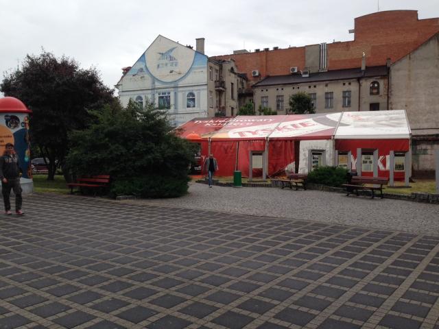 Taki oto stylowy namiot reklamowo - plandekowy wystawił kaliszanom przedsiębiorca Kajetan Przybyła.