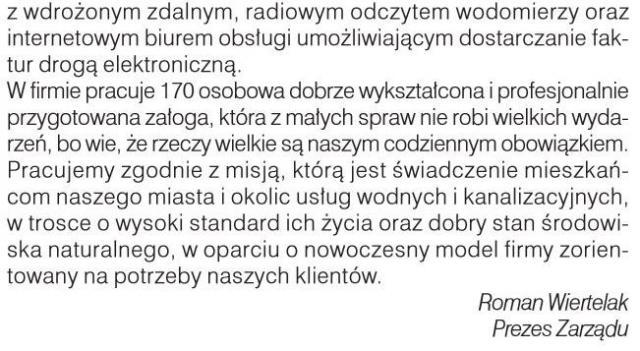 Roman Wiertelak jest prezesem - współzałożycielem Izby Gospodarczej „Wodociągi Polskie”. Kierowane przez niego przedsiębiorstwo - za czasów, kiedy obecny prezydent Grzegorz Sapiński przewodniczył Radzie Miejskiej Kalisza w roku 2013 - otrzymało tytuł “Zasłużonego dla Miasta Kalisza”, a samego Wiertelaka w roku 2014 roku uhonorowano tytułem „Mecenasa Kultury”. To też nie pomogło.