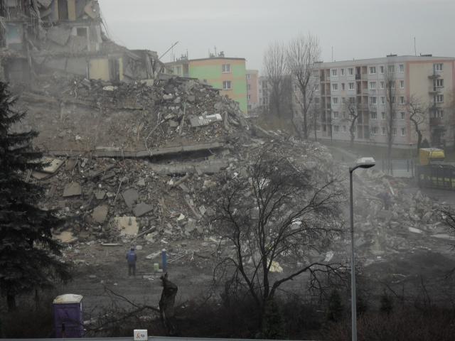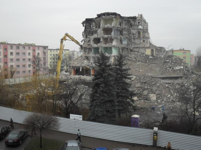 To już ostatnie godziny architektonicznej ikony Kalisza czasów PRL - budynku po dawnym Hotelu Orbis Prosna w Kaliszu przy ul. Górnośląskiej. Konstrukcja wielkiego obiektu zniknęła z mapy Kalisza już prawie w całości. Wkrótce zostanie tylko wielka hałda szarego gruzu i popiołu.
