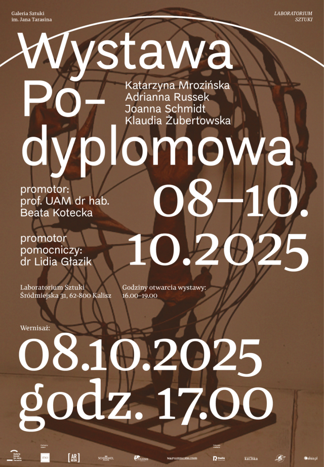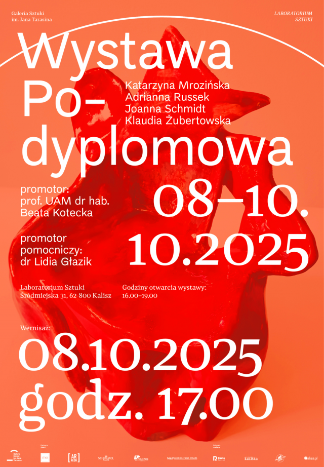 Galeria Sztuki im. Jana Tarasina zaprasza na wystawę podyplomową prezentującą Magisterskie Dyplomy Artystyczne w Pracowni Rzeźby UAM WPA pod kierunkiem prof. UAM dr hab. Beaty Koteckiej. Podczas prezentacji zobaczymy prace dyplomantek: Katarzyny Mrozińskiej, Adrianny Russek, Joanny Schmidt, Klaudii Żubertowskiej.