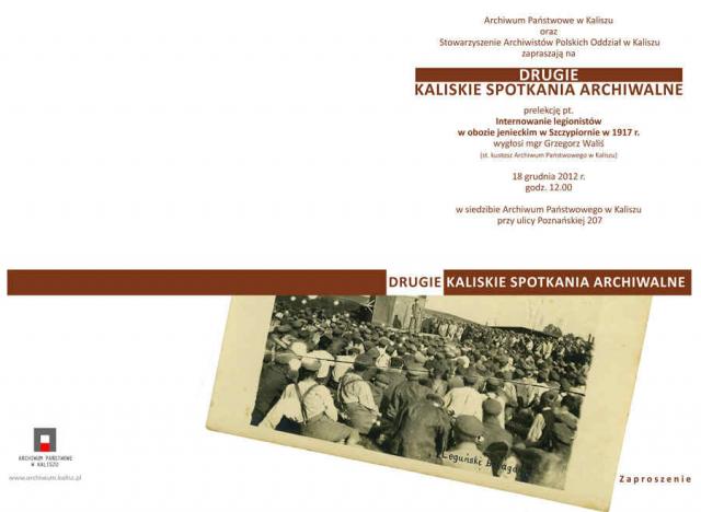 Na "Drugie Kaliskie Spotkania Archiwalne" zaprasza w ten wtorek, 18 grudnia, Archiwum Państwowe w Kaliszu. Tym razem tematem spotkania będzie "Internowanie legionistów w obozie jenieckim w Szczypiornie w 1917 r."