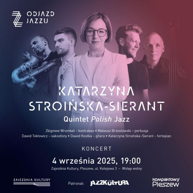 Polski jazz w najlepszym wydaniu - w klimatycznej sali w wyjątkowej aranżacji abażurów - podkreśla Przemysław Marciniak - dyrektor Zajezdni Kultury w Pleszewie, zapraszając na czwartkowy koncert pełen emocji, energii i improwizacji. Pleszewscy miłośnicy jazzu usłyszą standardy polskich jazzmanów m.in. Krzysztofa Komedy, Zbigniewa Urbaniaka. Koncert będzie mieć też walory edukacyjne a najwyższy poziom zapewnia Katarzyna Strońska - Sierant dr hab. sztuk muzycznych od 2013 roku profesor zwyczajna na Akademii Muzycznej im. I.J. Paderewskiego w Poznaniu - kierowniczka Katedry Instrumentalistyki i Wokalistyki Jazzowej. Prof. Strońska - Sierant tworzy dzieła łączące stylistykę jazzową z muzyką poważną. W Zajezdni Kultury w Pleszewie Katarzyna Strońska - Sierant - wirtuozka fortepianu wystąpi z muzykami z którymi tworzy Quintet Polish Jazz - Zbigniew Wrombel - kontrabas, Mateusz Brzostowski - perkusja, Dawid Toklowicz - saksofony i Dawid Kostka - gitara. Wstęp na koncert wolny.