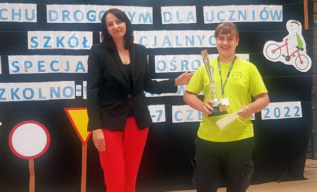 Drużyna Szkoły Podstawowej Specjalnej nr 19 w Kaliszu zwyciężyła w XIII Ogólnopolskim Turnieju Bezpieczeństwa w Ruchu Drogowym dla uczniów szkół specjalnych i specjalnych ośrodków szkolno - wychowawczych. Dwudniowa impreza odbyła się w poniedziałek i wtorek w Ośrodku Kultury Leśnej w Gołuchowie i Zespole Szkół w Broniszewicach z udziałem 9 zespołów - finalistów wojewódzkich m.in. z Poznania, Wrocławia, Częstochowy czy Polic. Młodzież musiała zmierzyć się z testem wiedzy o BRD, zadaniami z zakresu pomocy przedmedycznej i konkurencjami sprawnościowymi m.in. rowerowym torem przeszkód. Turniej podsumował radiuCENTRUM Sławomir Chrzanowski, dyrektor Wojewódzkiego Ośrodka Ruchu Drogowego w Kaliszu, który był współorganizatorem wydarzenia: