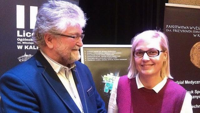 na fot.: prof. dr hab. Stanisław Mitura / PWSZ Kalisz; Katzryna Kozieł / koordynator Szkolnych Spotkań z Nauką Copernicus Science
