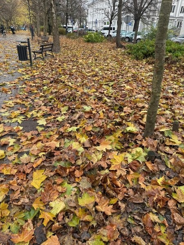 na fot.: gruby kożuch starych liści w Parku Miejskim