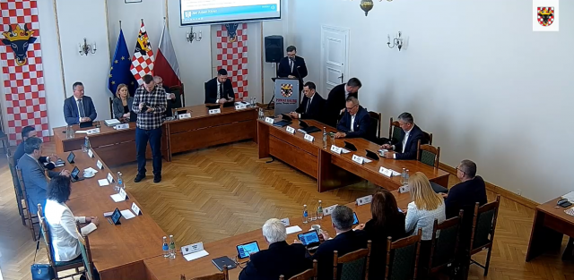 na screenie: głosowanie nad podwyżką w czasie sesji Rady Powiatu Kaliskiego