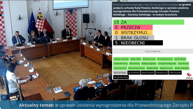 Miesięczne dochody Przewodniczącego Zarządu Powiatu Kaliskiego to składowa trzech kwot – wynagrodzenia zasadniczego, specjalnego oraz dodatku specjalnego. Zgodnie z przepisami o maksymalnym wynagrodzeniu członka zarządu jednostki samorządu terytorialnego nie może ono przekroczyć w ciągu miesiąca 11,2 - krotności kwoty bazowej określonej w ustawie budżetowej na 2026 rok, które obecnie wynosi 1 935,26 zł. W czasie środowej sesji, 25 marca radni Rady Powiatu Kaliskiego zdecydowali, że po podwyżce wynagrodzenie zasadnicze starosty kaliskiego wynosi 11 280,00 zł a dodatek funkcyjny obecnie to 3 760,00 zł. Do tego dochodzi dodatek specjalny w wysokości 30% łącznie wynagrodzenia zasadniczego i dodatku funkcyjnego, co stanowi kwotę 4 512,00 zł. Razem to 19 552 zł.