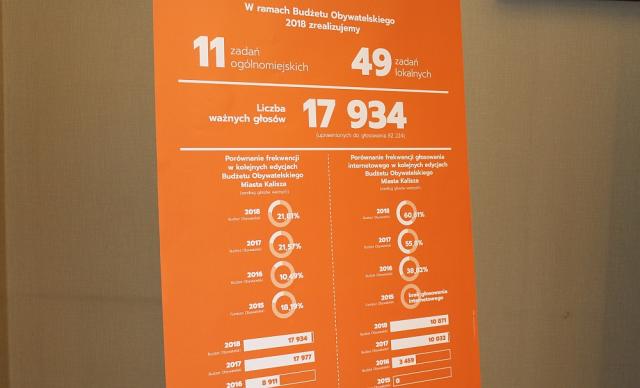 Znamy wyniki głosowania Budżetu Obywatelskiego Kalisz 2018. Miasto zrealizuje rekordowo dużo bo aż 60 zadań - w tym 11 ogólnomiejskich i 49 projektów lokalnych. W tegorocznym głosowaniu ważne głosy oddało 17934 mieszkańców, a frekwencja wyniosła blisko 22%. Nieco ponad 5% było głosów nieważnych, a jak informuje radioCENTRUM prezydent Kalisza Grzegorz Sapiński wzrósł odsetek osób głosujących internetowo: