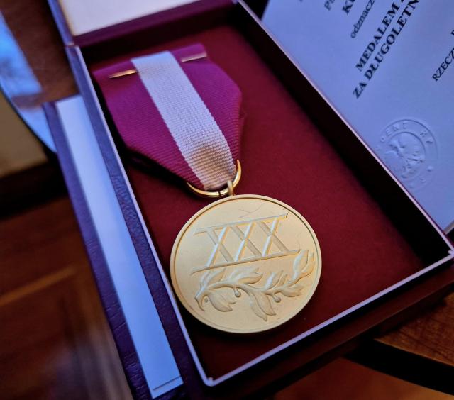 na fot.: Medal za Długoletnią Służbę - odznaczenie o bogatej tradycji - został ustanowiony jeszcze w okresie międzywojennym w 1938 roku, w historii współczesnej był nadawany z przerwami, został przywrócony w 2007 roku, posiada 3 stopnie: złoty, srebrny i brązowy.