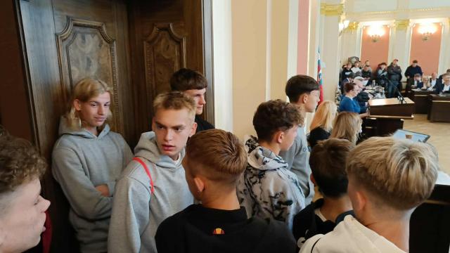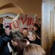 na fot.: młodzież protestująca na sali obrad Rady Miejskiej przeciwko pomysłowi władz Kalisza by zlikwidowac ich szkołę w obecnym kształcie i lokalizacji