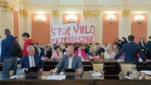 Czwartkowemu głosowaniu w kaliskim ratuszu towarzyszyła oburzona młodzież, wyposażona w ogromne transparenty protestacyjne.