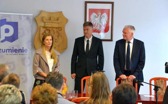 na fot. od lewej: Iwona Michniewicz / wójt Koźminka, Romuald Michniewicz / kandydat na posła, Jarosław Gowin / wicepremier, prezes partii Porozumienie