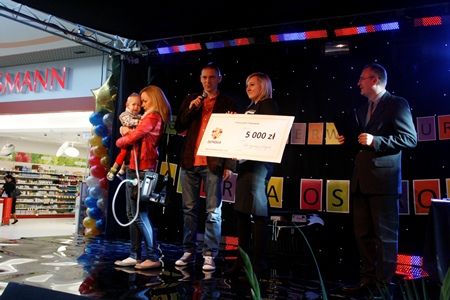 Jednak wyjątkowo wzruszającą chwilą było przekazanie czeku na 5000 złotych na zakup specjalistycznego wózka dla dwuletniego Franka (blog www.mojsynfranek.pl) "Niedawno złożyliśmy do przedstawicieli Galerii prośbę o dofinansowanie zakupu wózka rehabilitacyjnego, który kosztuje około 15 000 złotych i ku naszemu zaskoczeniu ta prośba została wysłuchana i to bardzo szybko, w ciągu paru dni" - powiedział Radiu Centrum tata chłopca - Szymon Trzęsowski: "Dostaliśmy telefon, że kwota będzie przekazana z okazji i przy okazji urodzin Galerii. A że Franek też ma akurat urodziny więc mamy dwie imprezy. A tak na serio - ta kwota pomoże nam sfinansować zakup wózka, bez którego Franek nie ma szans nawet na próbę samodzielnego poruszania się."