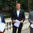 na fot.: od lewej: E. Darwich, D. Grodziński, S. Chrzanowski/radni PO