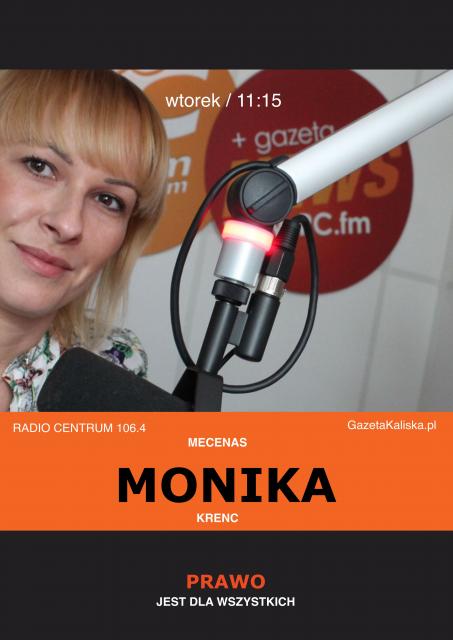 Mecenas Monika Krenc wykonuje zawód adwokata we własnej kancelarii adwokackiej w Kaliszu. Pytania natury prawnej można zgłaszać do mecenas Krenc telefonicznie w środy od godz. 14:00 do 15:00, telefon: 501 324 908.