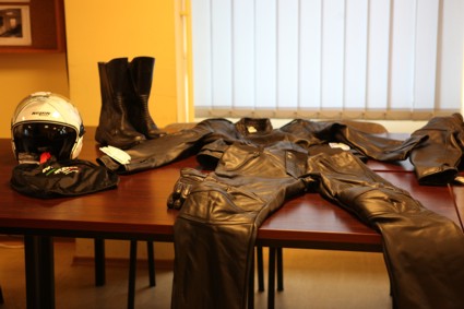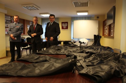Ostrowscy policjanci z patrolu motocyklowego dostali dwa skórzane kombinezony z butami i kaskami. To kolejne dofinansowanie komendy przez władze miasta. Kombinezony trafią do wyznaczonych już funkcjonariuszy, którzy służyć będą pomocą także w przyszłym roku w Poznaniu, podczas Euro 2012. "Każdy komplet jest indywidualnie dobrany do policjanta" - powiedział Radiu Centrum komendant ostrowskiej jednostki Krzysztof Nadera:
