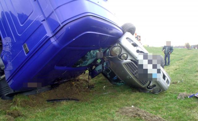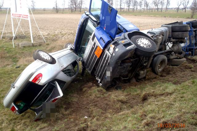 Ciężarówka przewożąca 20 ton azotu zderzyła się z samochodem osobowym z lawetą. Do wypadku doszło w sobotnie, późne popołudnie na drodze w miejscowości Smoszew w gminie Krotoszyn. W wypadku na szczęście nikt nie ucierpiał, nie doszło też do rozszczelnienia cysterny przewożącej azot.