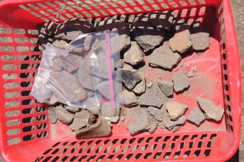 Nagrodą za ciężką pracę są pierwsze znaleziska: 1 denar Trajana, osełka i sporo fragmentów ceramiki.