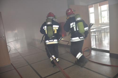"Po przybyciu na miejsce faktycznie okazało się, że w ogniu jest jedna z klas. Jednocześnie dowódca akcji otrzymał informacje, że w sali tej znajdują się dwie poszkodowane osoby, które zostały natychmiast ewakuowane na zewnątrz budynku. W międzyczasie w szkole ogłoszono alarm przeciwpożarowy. Tym samym zarządzono ewakuację wszystkich uczniów. Młodzież ze względu na deszczową pogodę, trafiła do pobliskiej sali sportowej, która była bezpiecznym miejscem do ewakuacji. Na szczęście pożary w szkołach zdarzają się bardzo rzadko na naszym terenie, ale ćwiczymy, aby w przypadku faktycznego zagrożenia - przeprowadzić sprawnie, fachowo, a przede wszystkim skuteczne działania ratownicze."