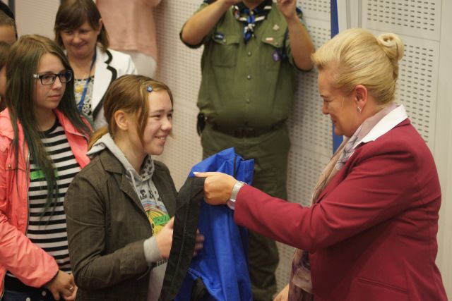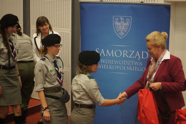 W środę 6 lipca goście z Białorusi odwiedzili Salę Sesyjną Urzędu Marszałkowskiego w Poznaniu, a towarzyszyli harcerze Hufca ZHP Jarocin, którzy opiekują się młodzieżą podczas pobytu w naszym kraju. Marszałek Marzena Wodzińska powitała gości i serdecznie podziękowała im za czynną działalność na rzecz propagowania kultury, dobrego imienia Polski, polskich tradycji oraz wręczyła im upominki.