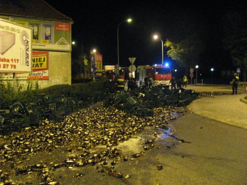Po raz kolejny, w nocy z poniedziałku na wtorek, ostrowskie rondo było zablokowane. I po raz kolejny przyczyną tego były rozbite skrzynki z piwem. Zmieniła się jedynie marka samochodu, który przewoził towar, bo tym razem o rondo zahaczył samochód cieżarowy marki Renault z naczepą.