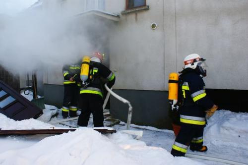 Zanim przyjechało pogotowie, strażacy wzięli poszkodowanych do swojego samochodu, chroniąc przed kilkunastostopniowym mrozem. Trwają ustalenia przyczyn wybuchu ognia.