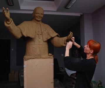 "To większe zadanie, inne niż poprzednie, jak choćby postać Rowińskiego. Tym bardziej, że wizerunek Ojca Świętego jest wszystkim doskonale znany i wyzwaniem dla rzeźbiarza jest wierne oddanie podobieństwa. Bo chodzi nie tylko o samą fizyczność, ale też by tchnąć w ten pomnik ducha postaci."