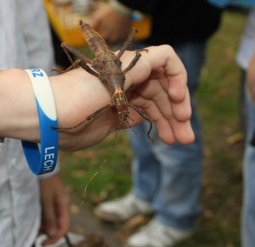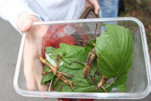 "Zabrałem dzisiaj ze sobą kilka owadów, to straszaki. Żywią się głównie liśćmi malin i jeżyn. Chcę je poświęcić. Mam nadzieję, że będą szybko rosły.