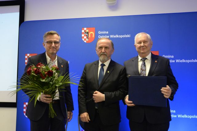 na fot. od lewej: burmistrz Pleszewa Arkadiusz Ptak i starosta pleszewski Maciej Wasielewski