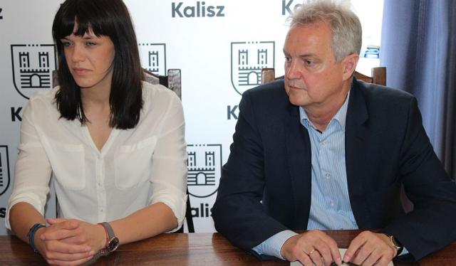na fot. od lewej: Hanna Łukasiewicz / kapitan drużyny Energa MKS Kalisz, Mirosław Dębowski / Kaliski Szkolny Związek Sportowy