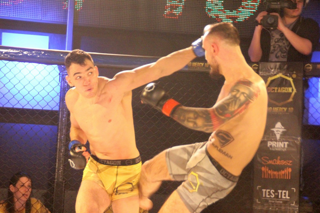 Adrian Dudek wygrał przez K.O. walkę wieczoru jubileuszowej gali Octagon No Mercy 10 Gold Edition, która odbyła się w sobotę w nietypowym miejscu, bo w dyskotece Manhattan w Czekanowie. Tym samym został pretendentem do pasa mistrzowskiego Octagon w kategorii wagowej 84 kg, pokonując Dawida Drobinę. Organizacja gali w dyskotece, bez udziału publiczności, a jedynie w systemie pay per view to nowe doświadczenie dla promotora Pawła Wojtaszaka: