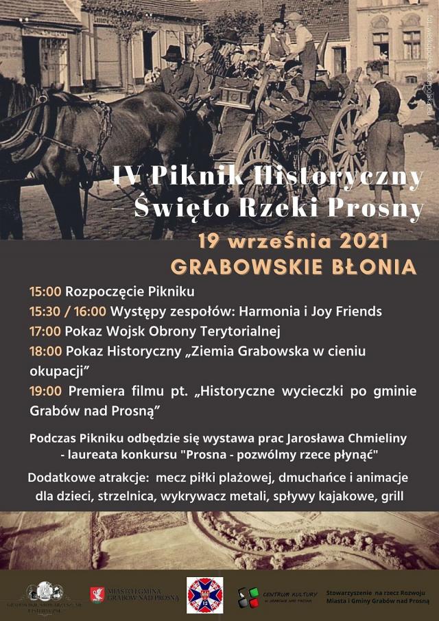 "W ramach pikniku zaplanowaliśmy pokaz sekcji operacyjnej Wojsk Obrony Terytorialnej – 124 Batalionu Lekkiej Piechoty w Śremie. Następnie zaprosimy mieszkańców na inscenizację historyczną „Ziemia Grabowska w cieniu okupacji". Ważnym elementem będzie premiera filmu pt.: „Historyczne wycieczki po gminie Grabów nad Prosną" zrealizowanego przy wsparciu Samorządu Województwa Wielkopolskiego. Podczas Pikniku odbędzie się też wystawa prac Jarosława Chmieliny – laureata konkursu „Prosna – pozwólmy rzece płynąć".
